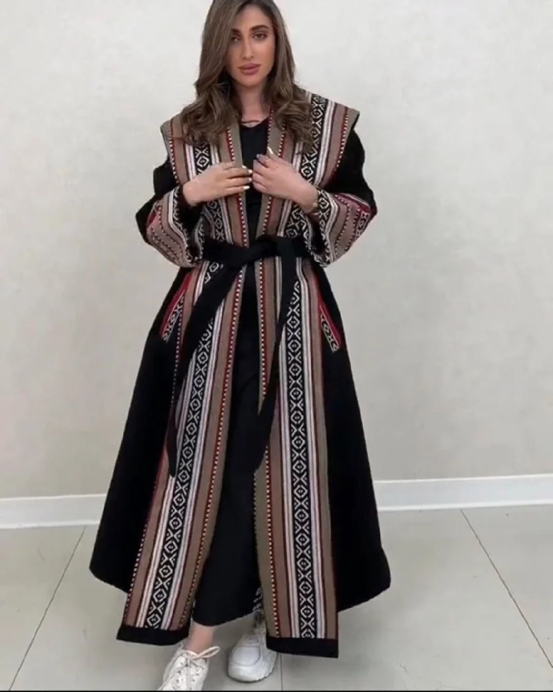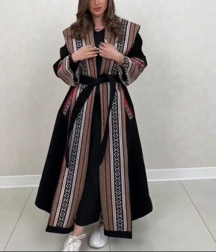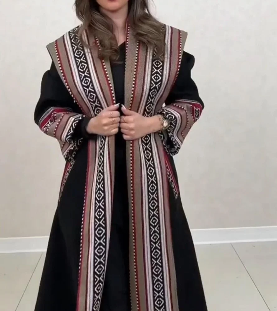 ستمتعي بالدفء والأناقة في هذا البشت الشتوي المصنوع من جوخ عالي الجودة، والمطرز بنقوش السدو التراثية التي تعكس الفخامة العربية. يأتي مع شال أنيق ليمنحك دفئًا مضاعفًا وأناقة متكاملة خلال الأيام الباردة.